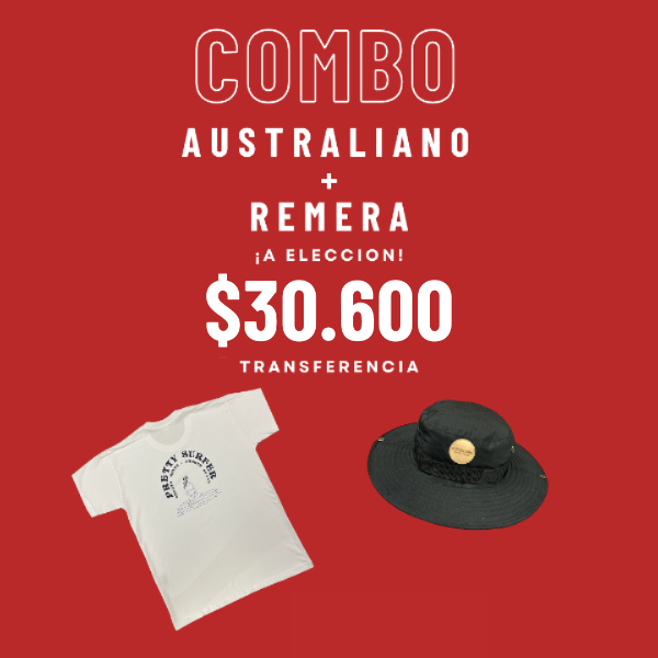 Llevate 1 Remera + 1 Sombrero Australiano por $35.000 abonando por transferencia o $41.180 en 3 cuotas sin interes